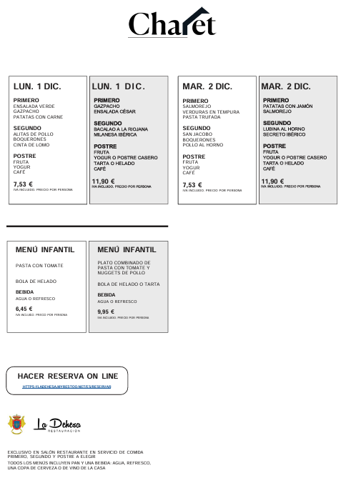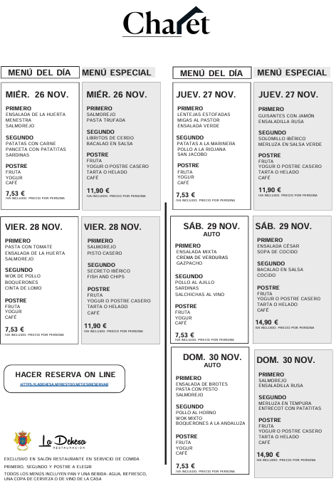 MENÚ SEMANAL DEL 26 DE NOV. AL 2 DE DIC.