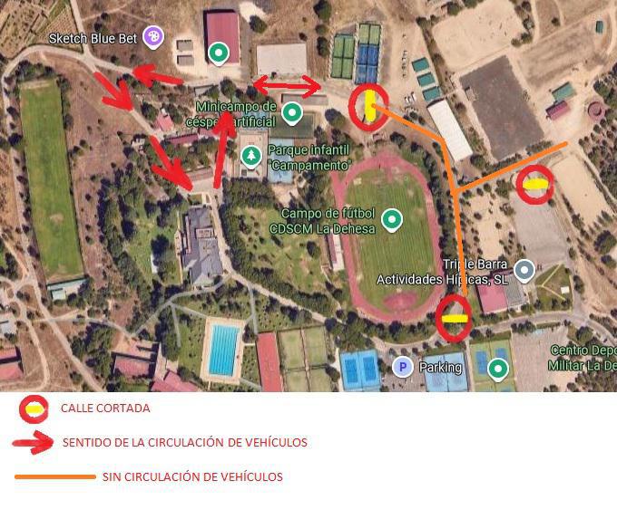 · Desde el lunes 27 de octubre, hasta finalización de obras, permanecerá cerrado al tráfico de vehículos, el vial que va desde la piscina climatizada al acceso a la pista de atletismo.